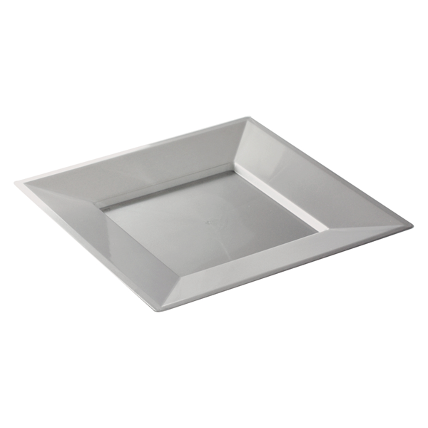 Assiette carrée réutilisable, compatible lave vaisselle, en PS injectée. Produit fabriqué en France.