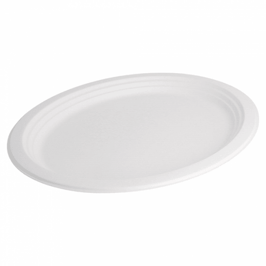 Assiette faites à 100% en pulpe de cellulose naturelle à partir de fibres de canne à sucre.