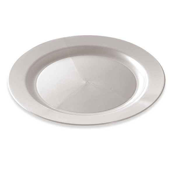 Assiette ronde réutilisable, compatible lave vaisselle, en PS injectée. Produit fabriqué en France.