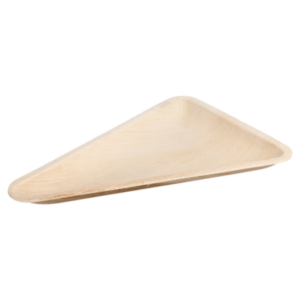 Assiette triangulaire en feuille de palmier, résiste aux graisses.