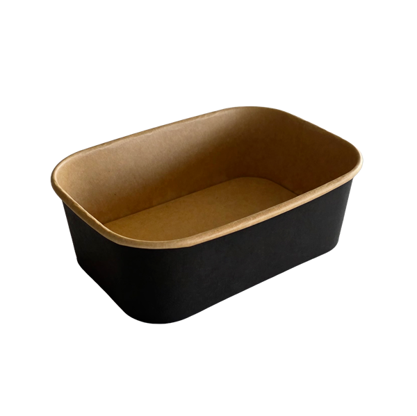 Bac rectangulaire en carton recyclable et biodégradable, idéal pour produits froids et chauds. Aptes pour le micro-ondes. Résiste aux graisses.