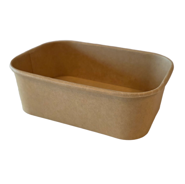 Bac rectangulaire en carton recyclable et biodégradable, idéal pour produits froids et chauds. Aptes pour le micro-ondes. Résiste aux graisses.