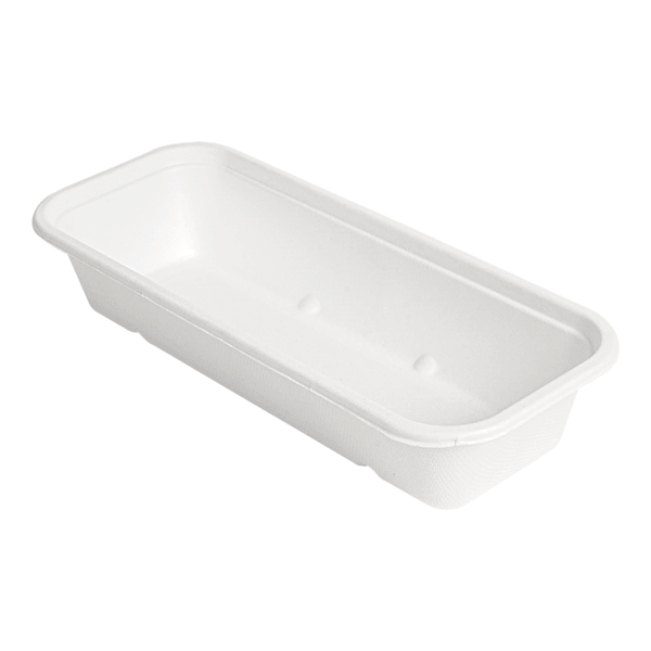 Barquette avec un compartiment en bagasse. Faites à 100% en pulpe de cellulose naturelle à partir de fibres de canne à sucre.