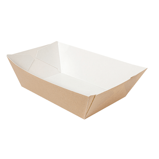 Barquette en carton ondulé nano-micro 220g/m² pour frites, saucisses, fish & chips, nuggets, churros, salades composées, ...