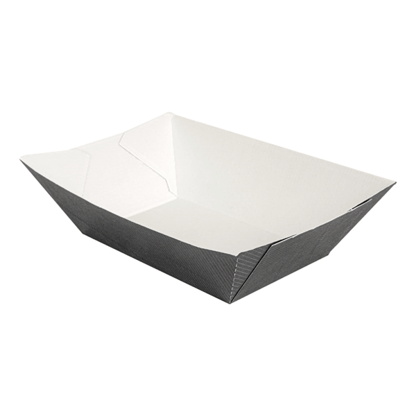 Barquette en carton ondulé nano-micro 230g/m² pour frites, saucisses, fish & chips, nuggets, churros, salades composées, ...
