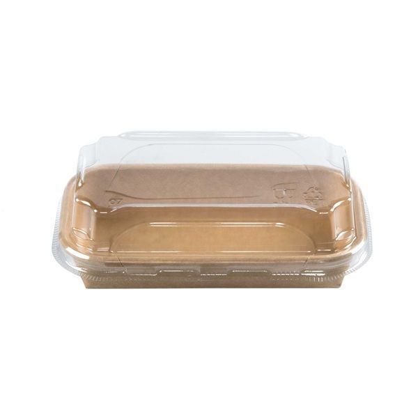 Barquette pour sushi, maki... en kraft laminé 300 +15 PE g/m² avec couvercle en PET transparent inclus