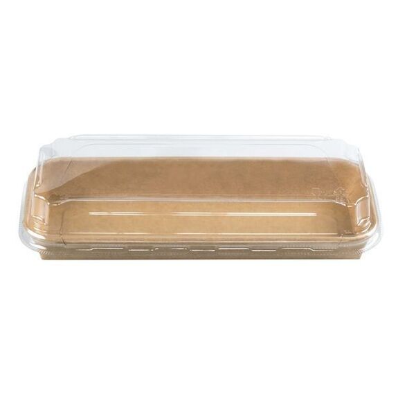 Barquette pour sushi, maki... en kraft laminé 300 +15 PE g/m² avec couvercle en PET transparent inclus