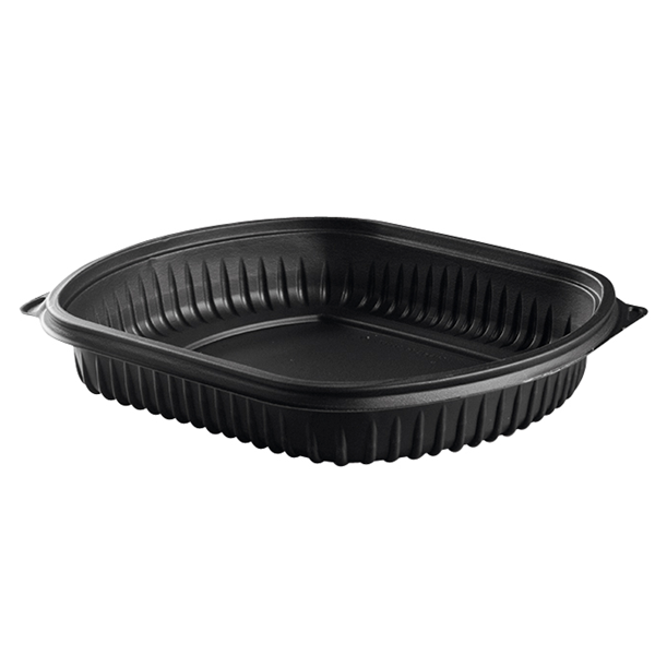 Plat 1 compartiment en PP noire. Convient parfaitement aux activités de traiteur et de vente à emporter. Couvercles vendus séparément. Une boite micro-ondable et solide convenant pour tous vos plats à emporter avec une forme légèrement ovale plus élégante.
