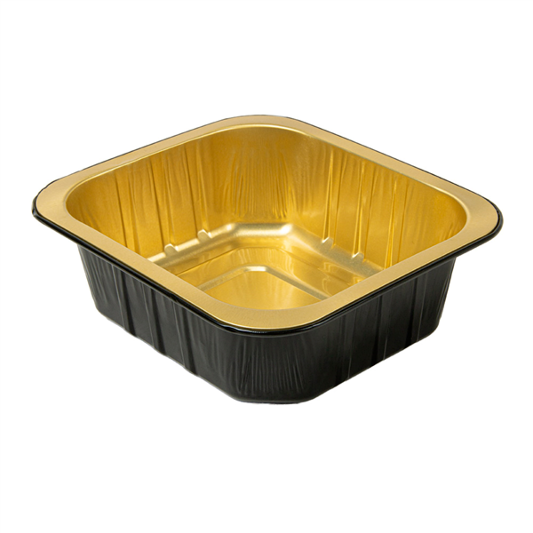 Barquette rectangulaire noir et or en aluminium laqué 14.2x12.6x4.5 cm - 515 ml - Pack de 50 unités