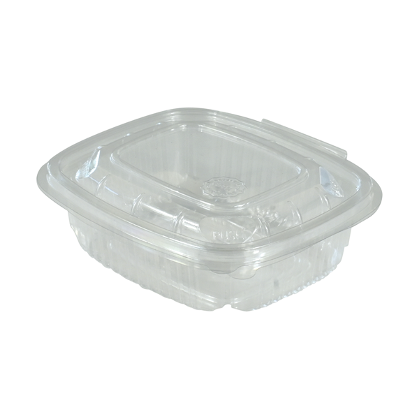Récipient avec couvercle à charnière idéale pour les traiteurs, charcutiers, snacks, ... pour la vente à emporter de plats préparés, salades, frites, sauces, ..