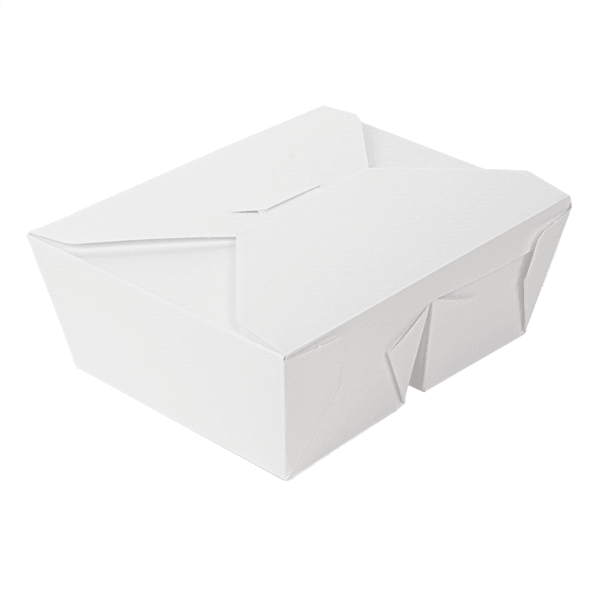 Boite américaine haute qualité avec fermeture, en carton blanc ondulé nano-micro ingraissable et étanche, micro-ondable. Interieur et extérieur plastifiés 250g/m² + 12PP