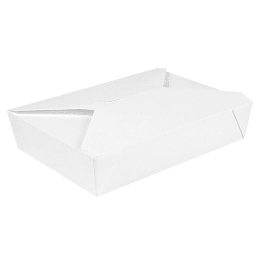 Boite américaine haute qualité avec fermeture, en carton ingraissable et étanche, micro-ondable. Interieur et extérieur plastifiés 220g/m² + 12µ PP.