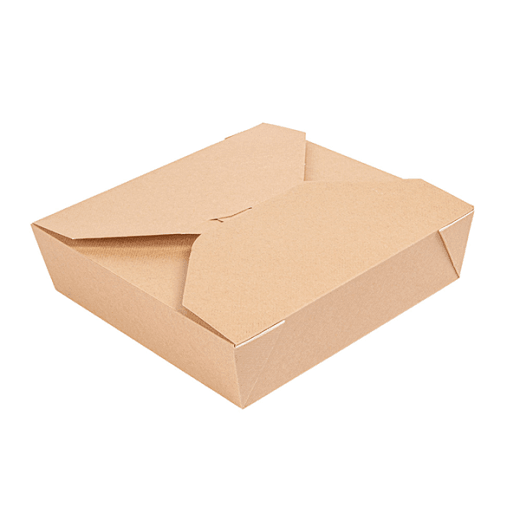 Boite américaine haute qualité avec fermeture, en carton ingraissable et étanche, micro-ondable. Interieur et extérieur plastifiés 250g/m² + 12µ PP.