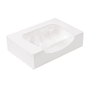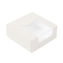Boîte blanche recyclable, intérieur stuqué blanc laqué en carton ondulé nano micro triple couche 230 g/m² avec fenêtre transparente antibuée. Contient une couche interne de papier résistant à l'humidité et à la graisse grâce à un nouveau procédé de fabrication.