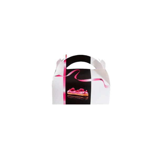 Boite pâtissière en carton décor passe partout avec poignée.