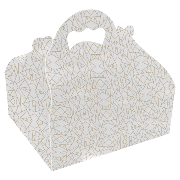 Boîtes pâtissière avec anse en carton ondulé nano micro triple couche 250 g/m². Contient une couche interne de papier résistant à l'humidité et à la graisse grâce à un nouveau procédé de fabrication.