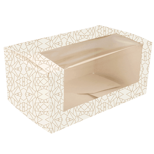 Boîtes pâtissière avec fenêtre en carton ondulé nano micro triple couche 250 g/m². Contient une couche interne de papier résistant à l'humidité et à la graisse grâce à un nouveau procédé de fabrication.