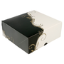 Boîtes à gâteaux de 21x21x7,5 cm fabriquées en carton ondulé nano-micro 250g/m² + fenêtre en OPP, décorées avec un motif classique en noir et blanc qui apporte élégance et polyvalence à la présentation des produits de pâtisserie. Leur structure résistante protège le contenu pendant le transport, assurant que les gâteaux, tartes et autres douceurs arrivent en parfait état. Idéales pour les pâtisseries, boulangeries et commerces à la recherche d'un emballage avec une touche distinguée, ces boîtes allient fonctionnalité et esthétique pour valoriser l'image du produit. Leur design intemporel en fait un choix parfait pour toute occasion, des célébrations aux ventes quotidiennes. Légères et empilables, elles facilitent l'organisation et optimisent l'espace de stockage.