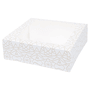 Boîtes pâtissière de couleur Blanche avec décoration Or en carton ondulé nano micro triple couche 250 g/m². Contient une couche interne de papier résistant à l'humidité et à la graisse grâce à un nouveau procédé de fabrication.