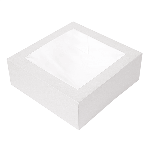 Boîtes pâtissière avec fenêtre en carton ondulé nano micro triple couche 240 g/m². Contient une couche interne de papier résistant à l'humidité et à la graisse grâce à un nouveau procédé de fabrication.