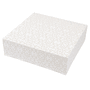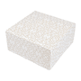 Boîtes pâtissière de couleur Blanche avec décoration Or en carton ondulé nano micro triple couche 250 g/m². Contient une couche interne de papier résistant à l'humidité et à la graisse grâce à un nouveau procédé de fabrication.