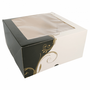 Boîtes pâtissière avec fenêtre de couleur Blanche et Noir en carton 275 g/m². Boîte avec ouverture frontale permettant une manipulation plus façile.