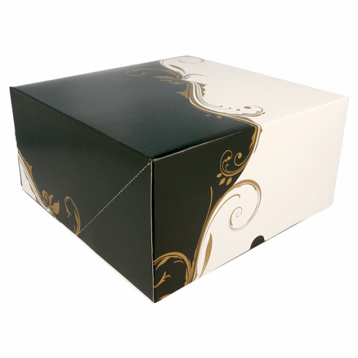 Boîte pâtissière BLANCHE ET NOIR 32x32x10(h) cm - pack de 100 unités