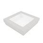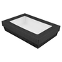 Boite en carton noir 290 g/m² + 18 PE g/m² avec base étanche et couvercle avec fenêtre transparente antibuée.