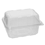Boîte en plastique transparente en PET avec couvercle haut à charnière.