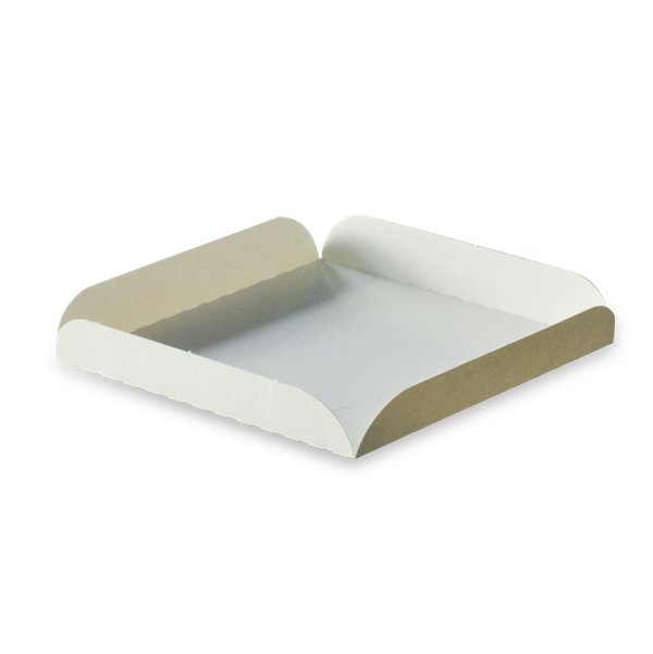 Carré avec bords latéraux relevables en carton blanc 230 g/m² pour crêpes, gaufres, pâtisseries, gâteaux, ...