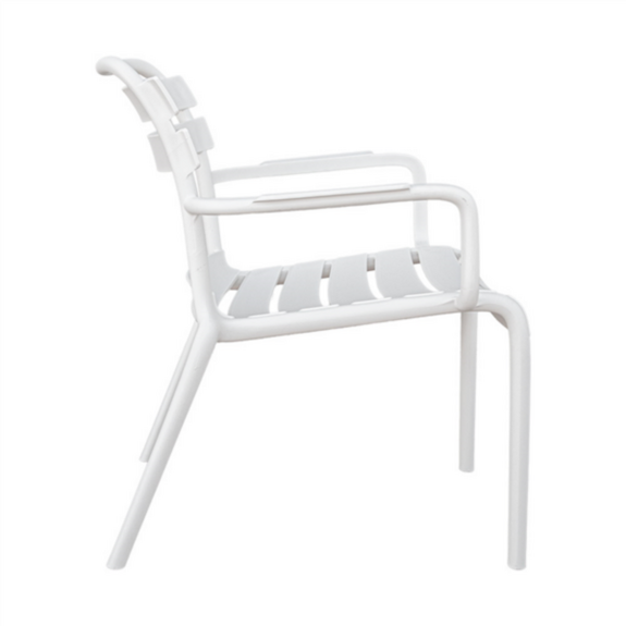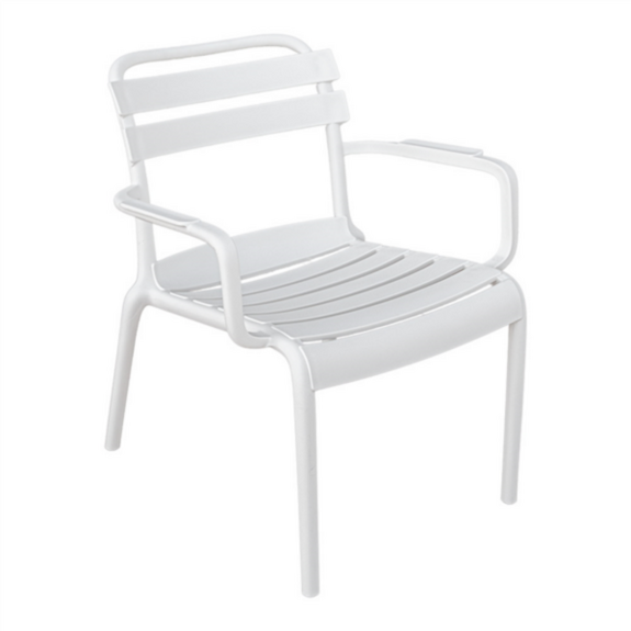 Cette chaise empilable mesure 64 x 55 x 75 cm et présente un design moderne de couleur blanche, idéal pour une utilisation en intérieur et en extérieur. Fabriquée en polypropylène (PP), elle est légère, résistante et facile à nettoyer, ce qui la rend parfaite pour les terrasses, les cafés et les restaurants. Sa structure en lattes larges offre un siège confortable et un dosseret ergonomique qui favorise une bonne posture et une bonne ventilation. Son design empilable permet d'optimiser l'espace lorsqu'elle n'est pas utilisée, facilitant ainsi son rangement. Son esthétique contemporaine et sa grande durabilité en font un choix fonctionnel et polyvalent pour tout établissement de restauration.