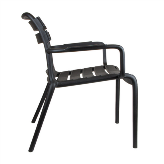 Cette chaise empilable mesure 64 x 55 x 75 cm et présente un design moderne de couleur noire, idéal pour une utilisation en intérieur et en extérieur. Fabriquée en polypropylène (PP), elle est légère, résistante et facile à nettoyer, ce qui la rend parfaite pour les terrasses, les cafés et les restaurants. Sa structure en lattes larges offre un siège confortable et un dosseret ergonomique qui favorise une bonne posture et une bonne ventilation. Son design empilable permet d'optimiser l'espace lorsqu'elle n'est pas utilisée, facilitant ainsi son rangement. Son esthétique contemporaine et sa grande durabilité en font un choix fonctionnel et polyvalent pour tout établissement de restauration.