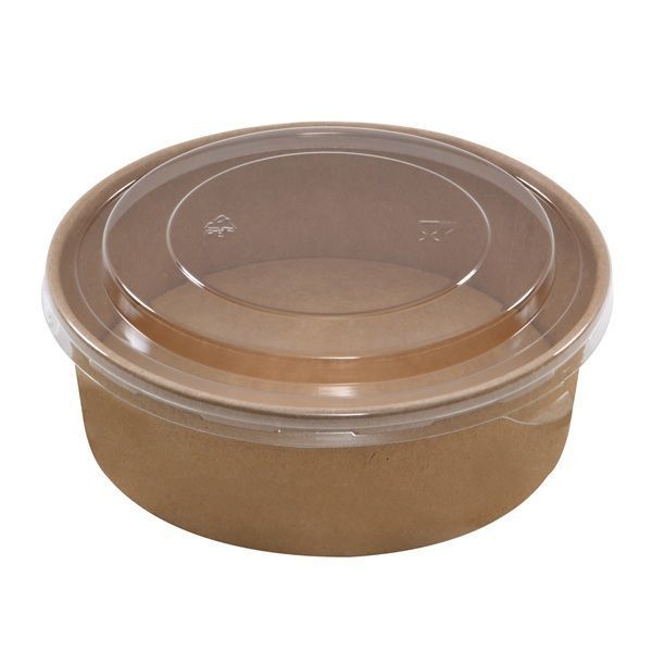 Ensemble de pot en carton pour usage multiples , épaisseur 300 g/m² + PE 15 g/m², résistant aux graisses et micro-ondable et de couvercle en PET (non micro-ondable)