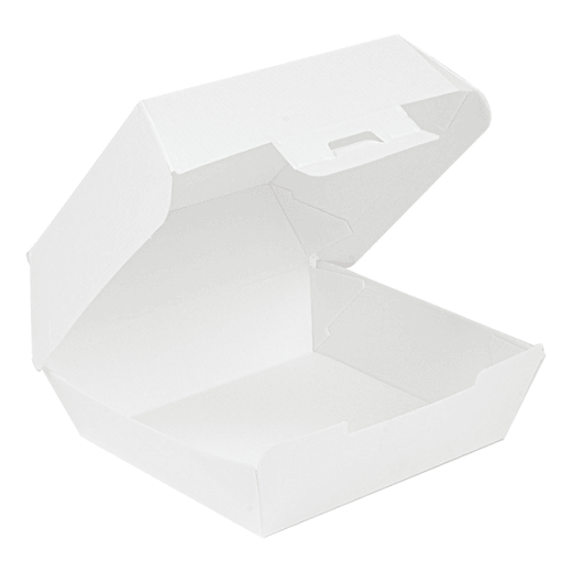 Coque à burger en carton ondulé nano micro triple couche 230 g/m². Contient une couche interne de papier résistant à l'humidité et à la graisse grâce à un nouveau procédé de fabrication.