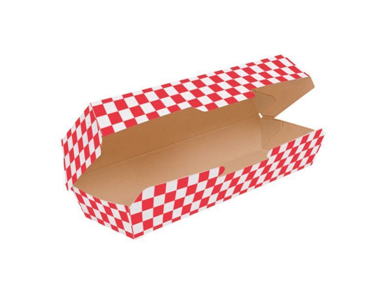 Boîte à hot dog en carton ondulé nano micro triple couche 230 g/m². Contient une couche interne de papier résistant à l'humidité et à la graisse grâce à un nouveau procédé de fabrication. Coquille pour hot dog de la collection THEPACK, avec un extérieur rouge vif et un intérieur de couleur naturelle qui met en valeur la présentation de l'aliment. Sa structure en carton nano-micro offre résistance et stabilité, idéale pour servir des hot dogs à emporter tout en conservant une image moderne et distinctive.