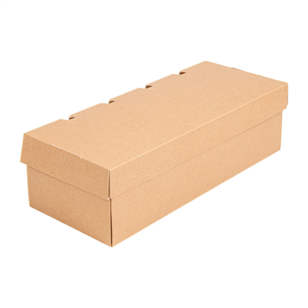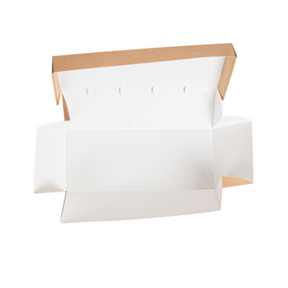 Boîte auto-montable pour panini de la collection THEPACK, fabriquée en carton nano-micro. Son design facilite un montage rapide sans besoin d'adhésifs. Idéale pour la vente à emporter, elle maintient le produit protégé et offre une excellente présentation. Une fois ouvert l'emballage sert d'assiette.