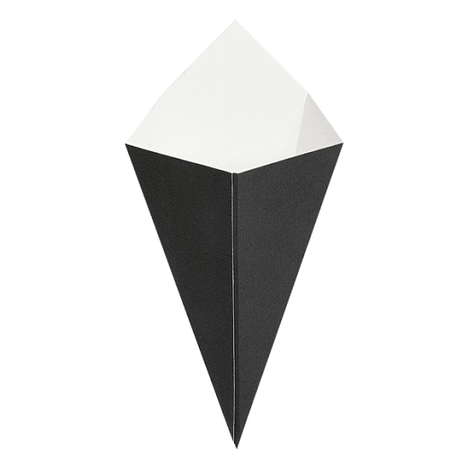 Cornet pour frites, fish & chips, churros et chichis, .en carton ondulé nano micro triple couche 230 g/m². Contient une couche interne de papier résistant à l'humidité et à la graisse grâce à un nouveau procédé de fabrication.