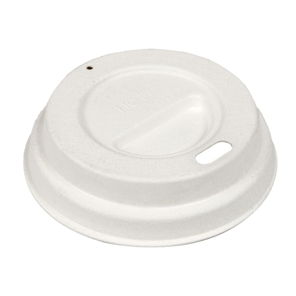 Couvercle en bagasse, recyclable, biodégradable et compostable blanc avec trou pour boire compatible avec :