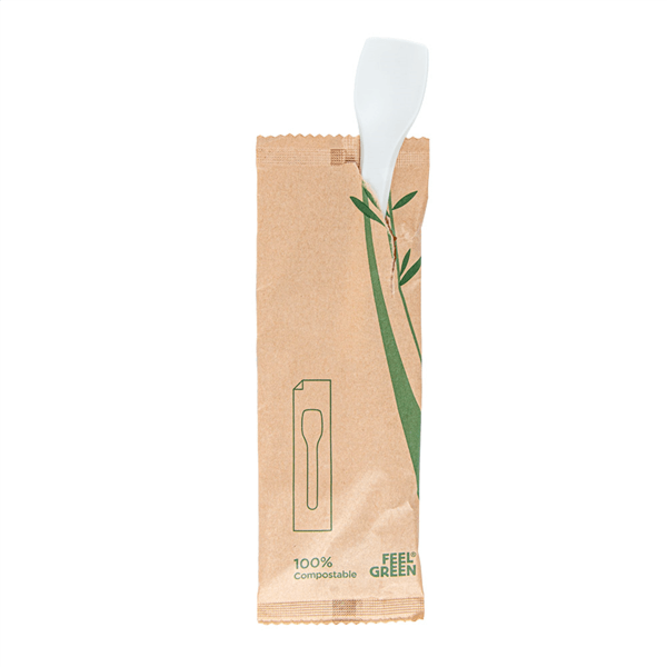 Cuillère à glace en CPLA (PLA cristallisé) réutilisable (Apte pour le lave-vaisselle 12 cycles) emballée individuellement dans un papier kraft