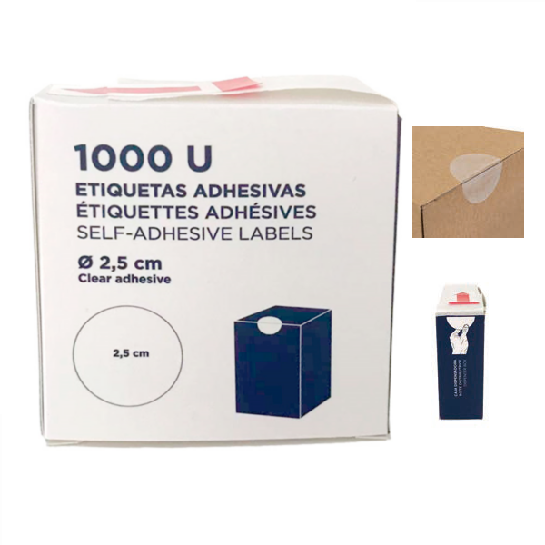 Rouleau distributeur avec 1000 étiquettes adhésives transparentes de Ø2,5 cm, conçues pour des tâches de fermeture ou de scellement sur des contenants, sacs ou autres supports. Le format en distributeur facilite une application rapide et confortable. L'étiquette non imprimée offre une solution neutre et discrète, compatible avec de multiples surfaces.