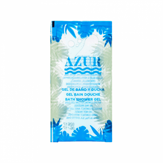 Gel douche "azur" en sachet individuel plastifié de couleur bleu