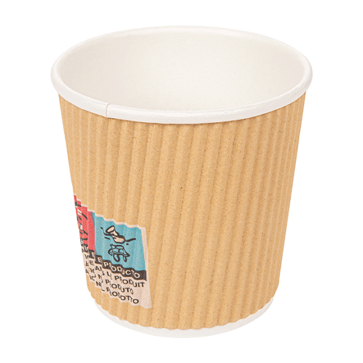 Gobelet en carton double paroi (1 couche + 1 ondulée) pour boisson chaude.
