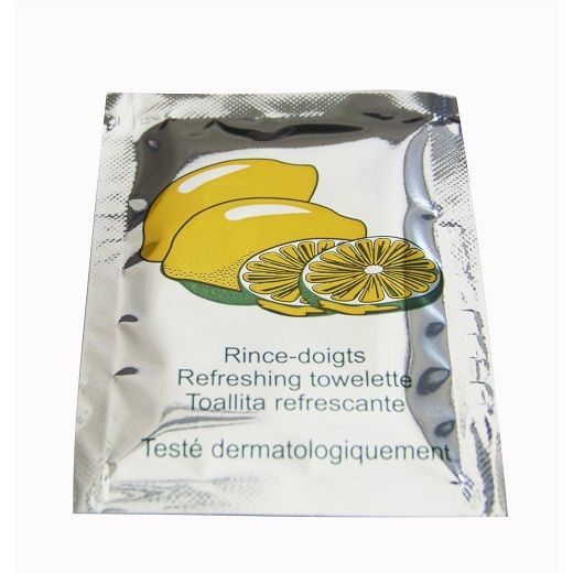 Lingette serviette airlaid 33gr/m² rafraîchissant Citron : lingettes imprégnée d'eau, d'alcool et parfum citron.
