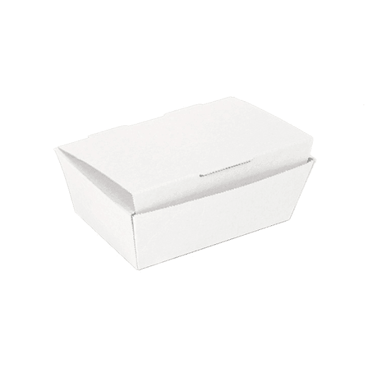 Mini Lunch Box en carton ondulé nano micro triple couche 230 g/m². Contient une couche interne de papier résistant à l'humidité et à la graisse grâce à un nouveau procédé de fabrication.Idéal pour les frites, nuggets, poulet pané, onion rings,...