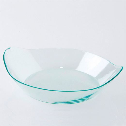 Mise en bouche mini-assiette de forme de elliptique stylisé vert d'eau