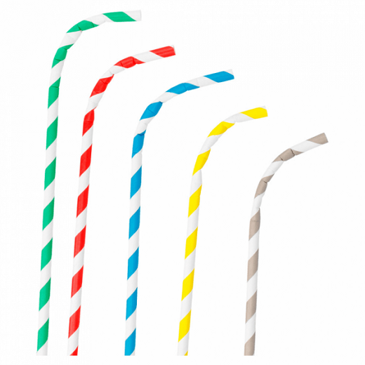 Pailles flexibles couleurs blanches avec rayures (couleurs assorties) en papier recyclable