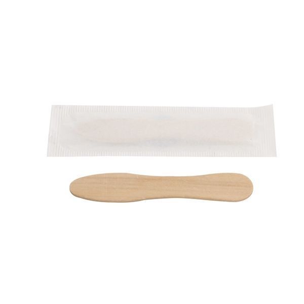 Petite cuillère de type spatule pour glaces ou sundaes en bois emballées en sachet individuel. Bois de peuplier "Populus canadensis".