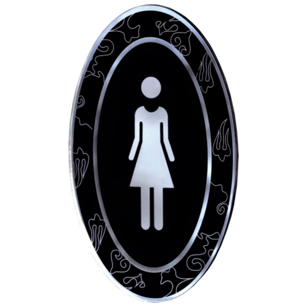Plaque de signalisation noire auto adhésive toilettes pour femmes 12.5 x 20.5 cm en acrylique
