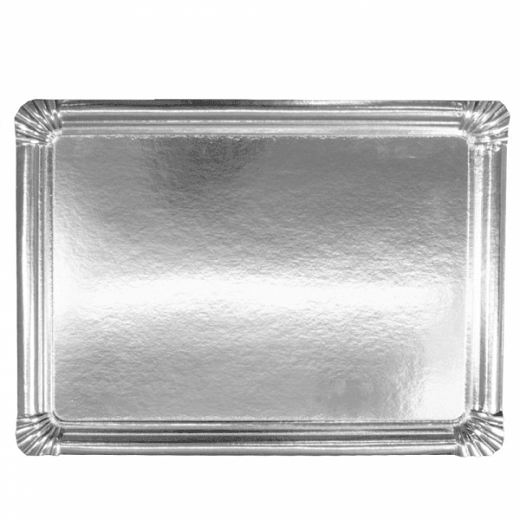 Plateau argenté rectangulaire en CARTON 34x45.5 cm - Carton de 90 unités