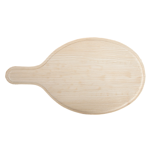 Le plateau ovale en Areca, avec une poignée intégrée, est idéal pour servir des aliments. Résistant aux huiles et aux graisses, il est 100 % biodégradable et compostable. Avec son design rustique et élégant, c'est le choix parfait pour ceux qui recherchent un produit respectueux de l'environnement. Grâce à sa poignée, ce plateau est facile à transporter et à déplacer entre les tables, ce qui facilite le service lors d'un événement de restauration. De plus, sa taille est adaptée à une présentation ordonnée et attrayante..